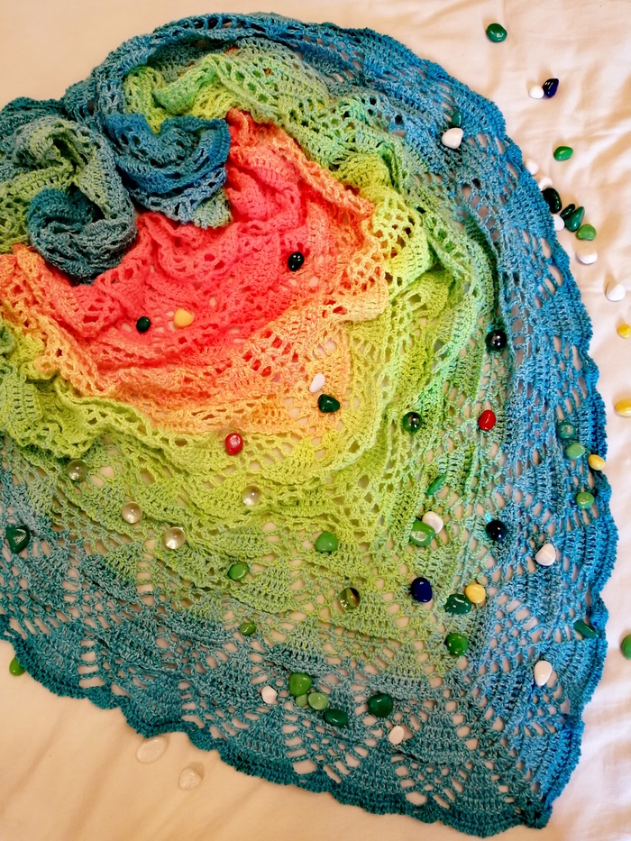 Закончила очередную шаль... И открыла для себя, что вязать простой узор с маленьким раппопортом куда сложнее, чем узор с различными "заковырками".