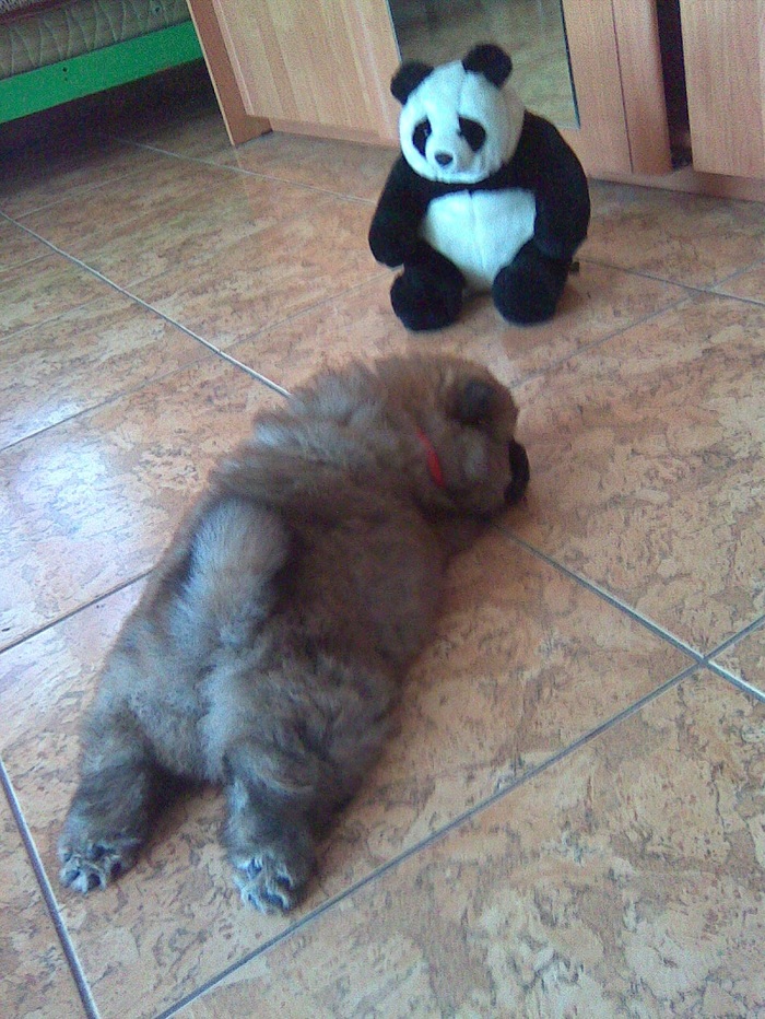 Этот Чау-Чау настолько очаровал нас с мужем своим буддийским отношением к жизни (мы сами - буддисты), что мы решили приобрести щенка этой породы. Вдвоем им будет веселее, считали мы. Так у нас появилась Маля, которую мы взяли в возрасте 5 недель.