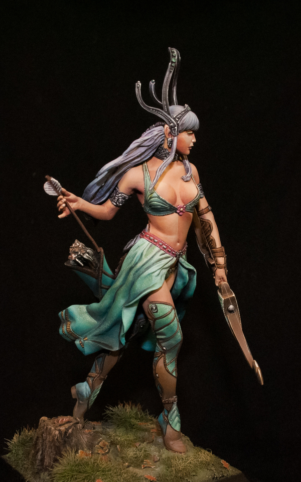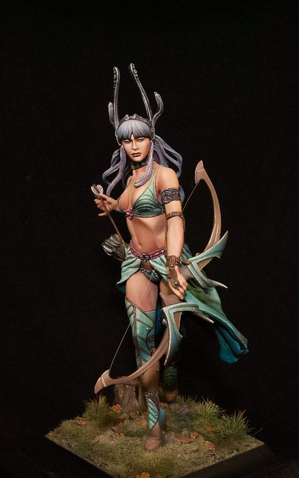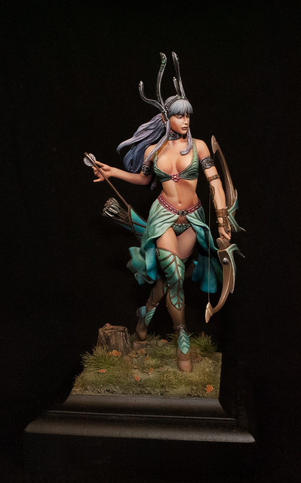 Начну я пожалуй с одной из последних и многими любимой работы - Таратиэль, лунная эльфийка. Производитель Pegaso Models, 75 мм, металл.
