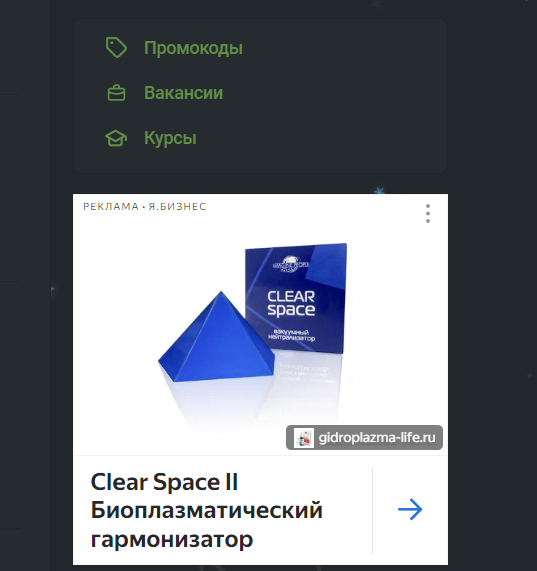 не отключаю рекламу потому что бывает попадаются интересные объявления основанные на моих поисковых запросах. А тут хоба - Биоплазматический гармонизатор!!!