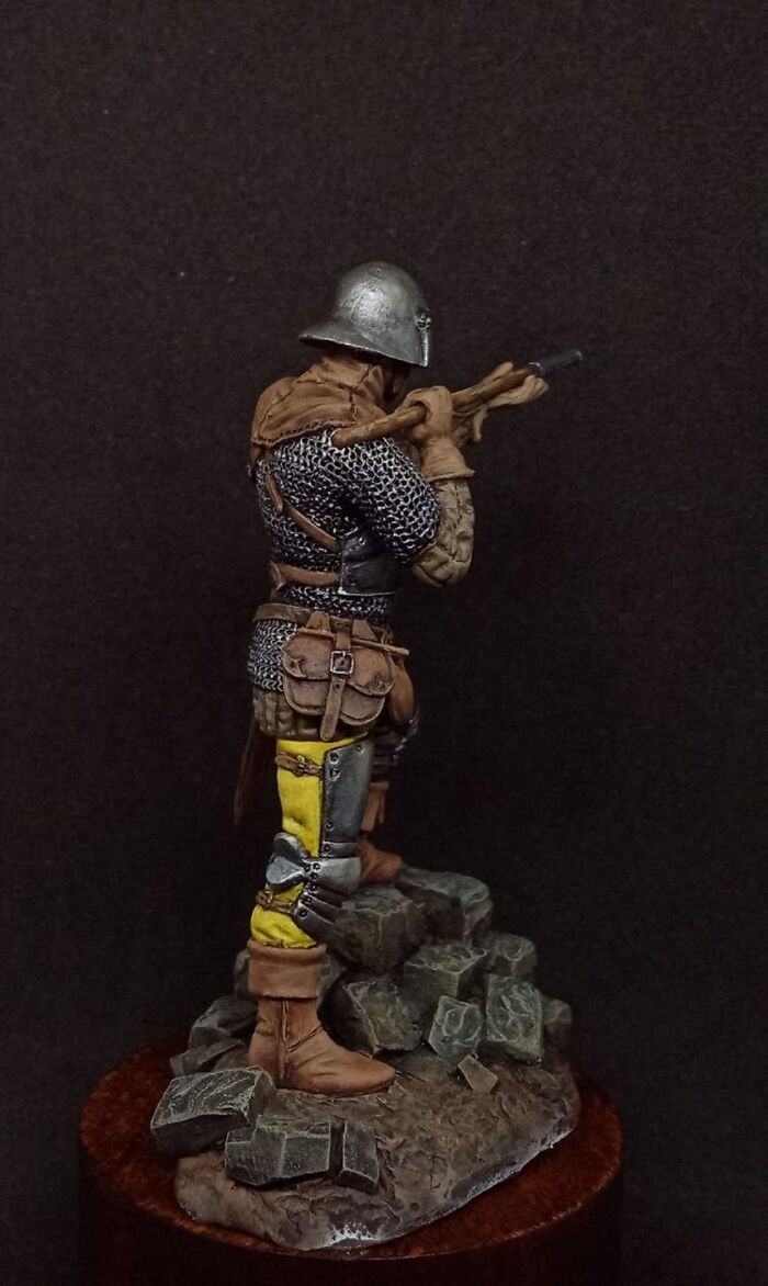 Как этот "короткоствол" выглядел "в сборе" и удерживался при стрельбе замечательно демонстрирует работа Handgonne shooter, 15th century, Evgeny Rimul.