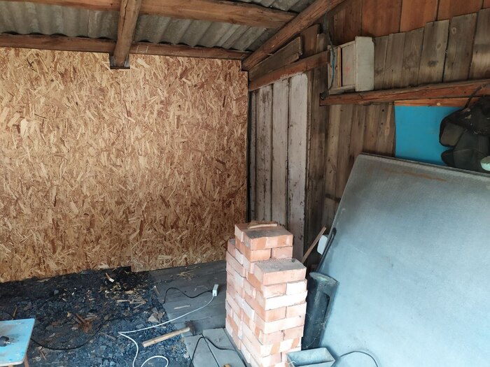 За несколько часов был разобран дровник, снято подобие потолка, вытащен весь хлам, расчищена территория.