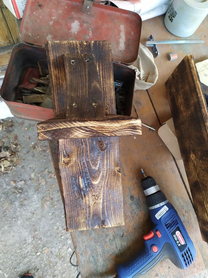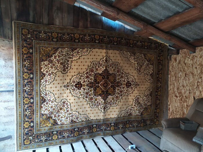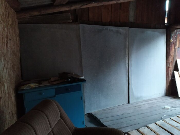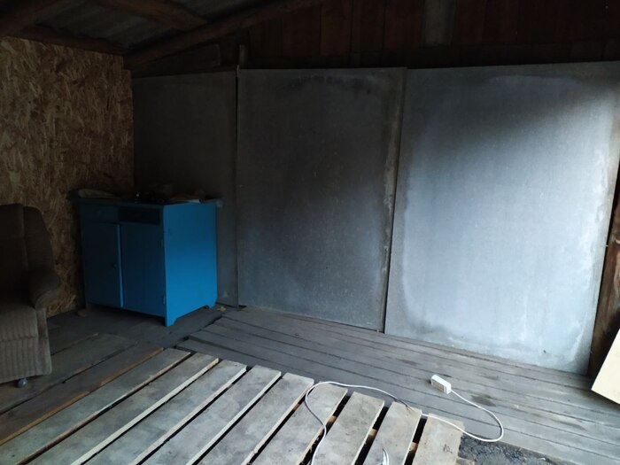 Одну из стен решил закрыть старым, но добротным ковром. И опереть можно, и мягко и тепло, вторую стену закрыл тремя большими листами шифера, когда оставшегося от ремонта забора.