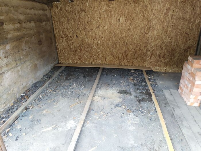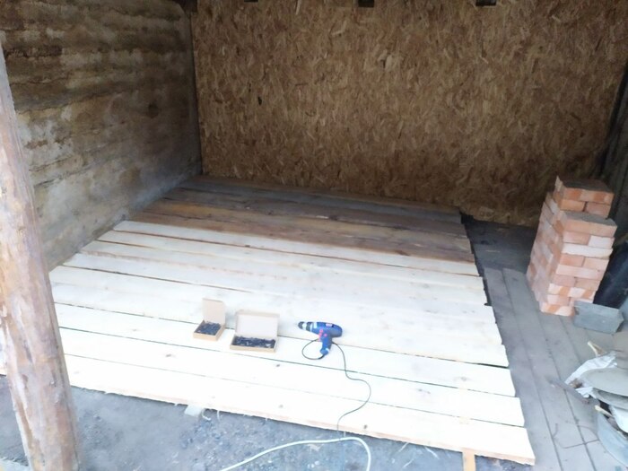 Следующим был пол. Делать решил просто из досок. Съездил докупил недостающее количество.