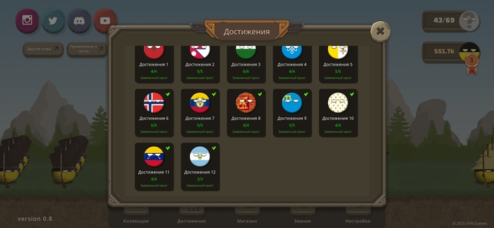 "Вот я и выполнил все поддостижения и получил цельное 12 достижение и новую страну! "