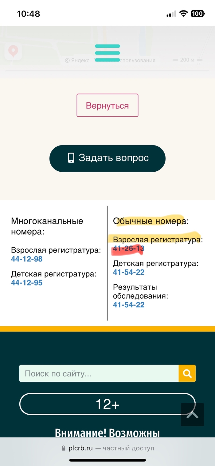 Один из номеров с таблички указан как многоканальный, но когда тебе за 60 лет и температура 39 то ищешь обычный телефон регистратуры. Который указан, но с которого не отвечают.