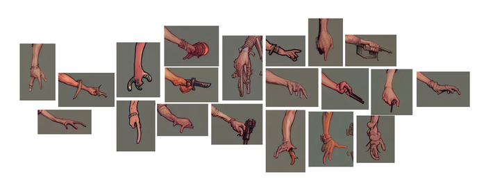 Кисти рук по классике выходят как культи и по итогу лучше дорисовывать их самому.