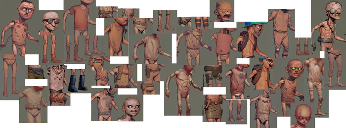 Интересные части на изображениях, будь то головы, обувь, пояс или футболка с нагрудной бронёй.