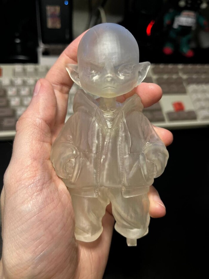 На этот раз я пошел на Авито с этим вопросом. Там цены также сильно разнились, доходило до 25 000 рублей за фигурку. По итогу нашёл исполнителя за 1200 рублей, правда, у него была только прозрачная смола. Он заверил, что разницы в качестве не будет. Хотя я не учел один нюанс…