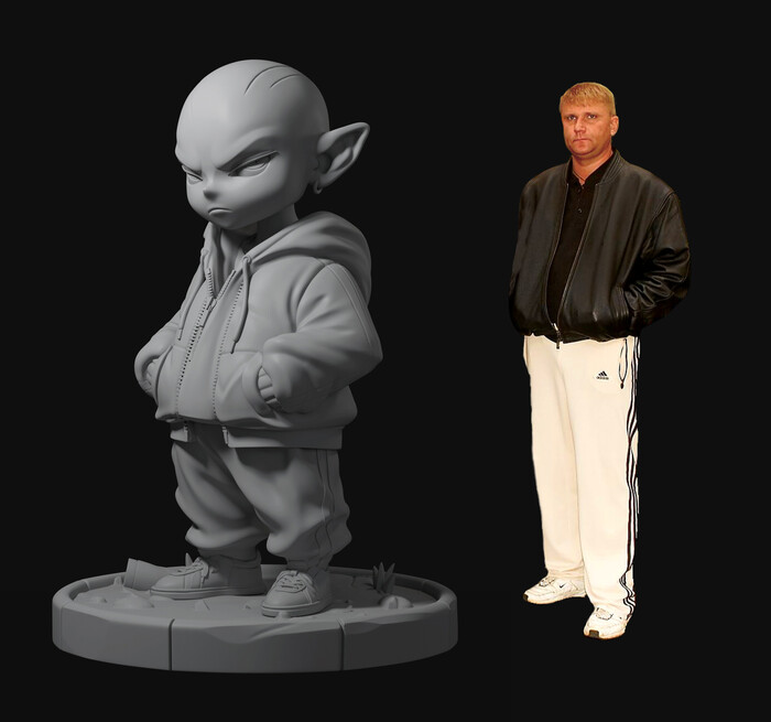 Сам я тридешить хоть немного и умею, но решил отдать это на аутсорс. Искал недолго и нашёл начинающего 3D-художника в ВКонтакте. И вот спустя неделю и несколько правок, 3D-модель фигурки была готова.