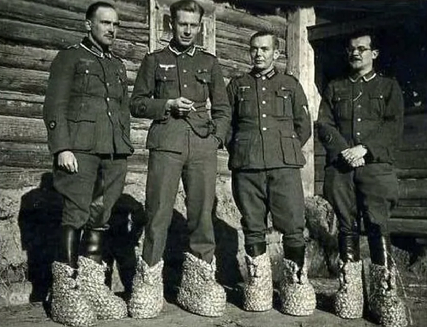 Фашисты были уверены, что завоюют Советский союз до наступления холодов в 1941 году, поэтому их обмундирование не было рассчитано на мороз. Одежда и обувь были тонкими, но чуть позже, по заказу немецким солдатам стали поставлять эрзац-валенки — это соломенная обувь на деревянной подошве, которая надевалась поверх сапог.