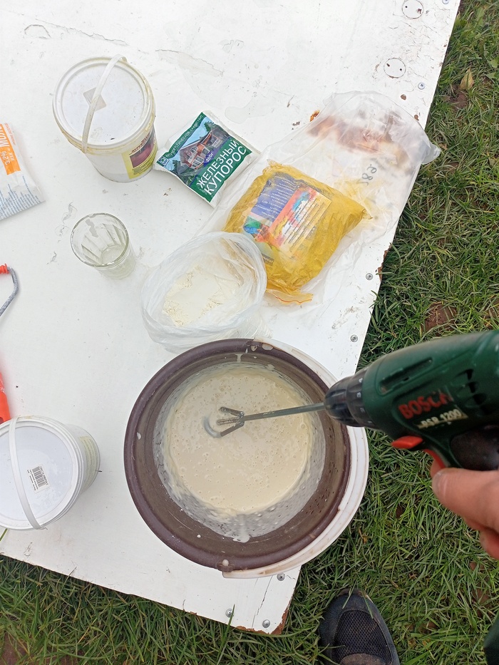 - Размешивать тщательно и часто. Лучше использовать дрель с насадкой.