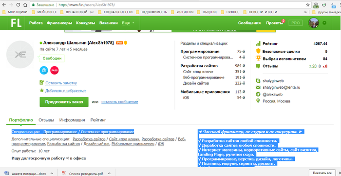 Как он работает: принимает заказ на создание сайта (я не занимаюсь программированием), высылает сканы моих документов, чтобы заказчик убедился, что он хороший человек и берет предоплату через кошелек КИВИ, Яндекс или другими доступными платежными системами, которых сейчас завались.