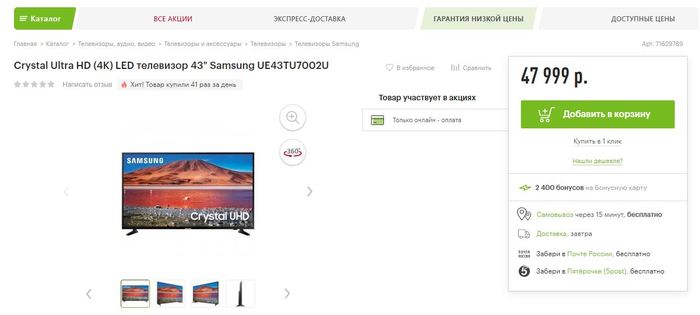 Ввиду необходимости, а не на панике :) , решил сходить в близлежащий магазин Эльдорадо. Приложение не работало от слово совсем. Цена на сайте 35 999. В другом магазине этой же сети цена была как на сайте. Оба телевизора были выложены в зале. Фото делал 28.02 - цена сейчас на фото ниже. Ценники не переставлял, продавцов не просил халтурить) фотографировал как есть. Хороших покупок