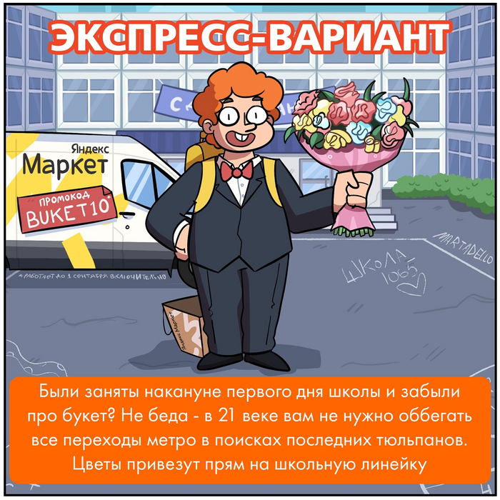 1 сентября скоро и Яндекс Маркет запустил рекламу своего сервиса по доставке цветов. Реклама прячется в мемах художников, пока попались два вида.