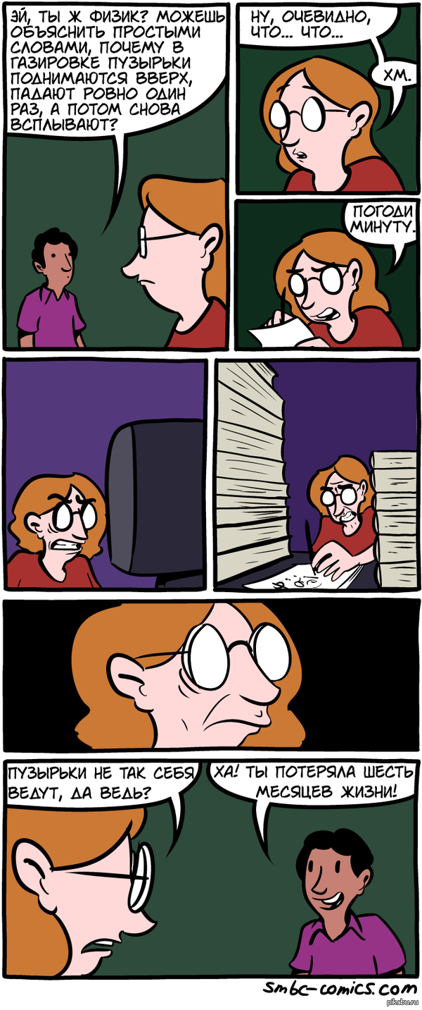 151 AlexVoron 11 лет назад Пузырьки или как заставить физика потерять 6 месяцев жизни) Комиксы Ученые Физика Газировка Шутка Юмор