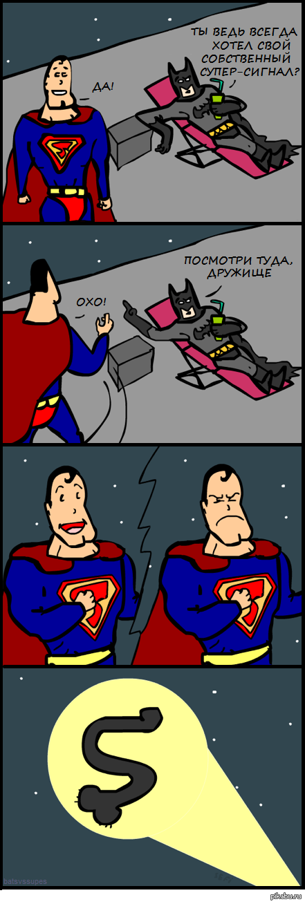 AlexVoron 11 лет назад Сигнал Что же это значит на Криптоне?) Batsvssupes Комиксы Бэтмен Супергерои Супермен Сигнал Юмор