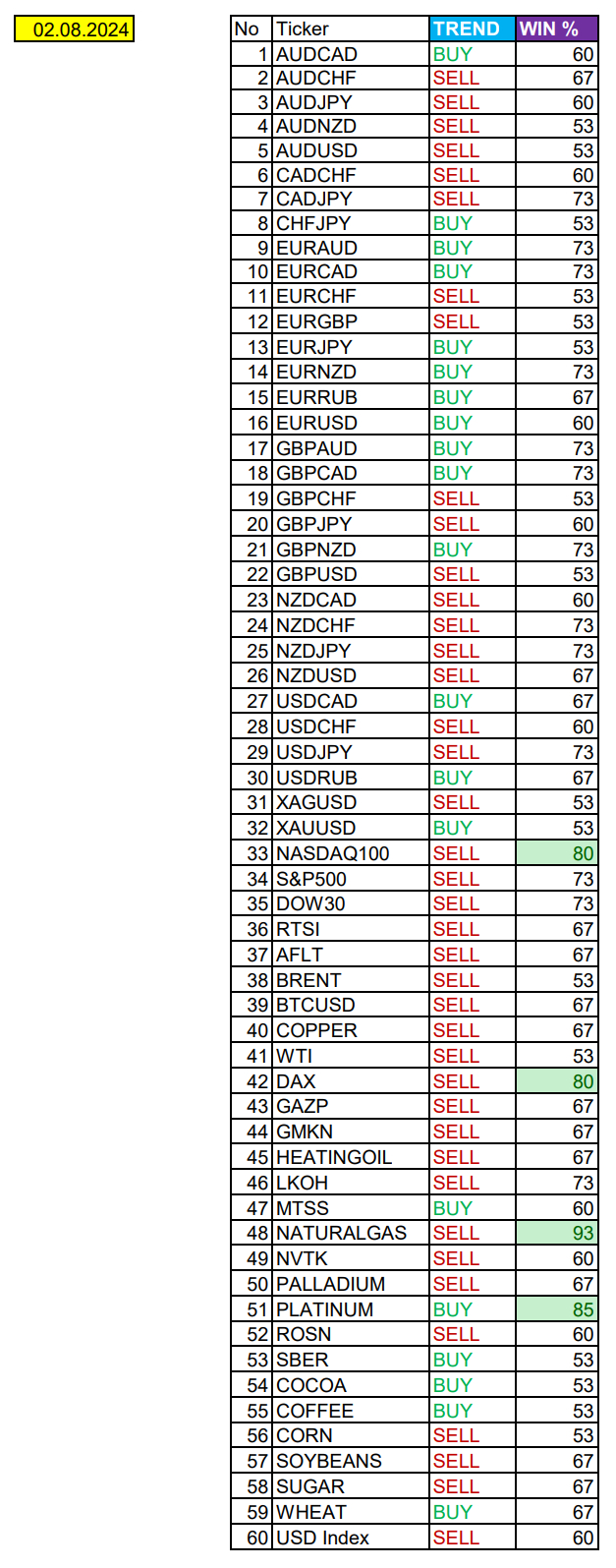 В своем телеграм канале (Александр Борских Торговля) я публикую не только открытую информацию на различные активы по самой сезонности, но и вероятностям ежедневного тренда, правила определения зон лимитных покупателей и продавцов, где выгоднее всего искать длинные или же короткие позиции с точными целями на ближайшую перспективу. Это открытый проект, где каждый из вас сможет найти все, что необходимо прибыльному трейдеру.