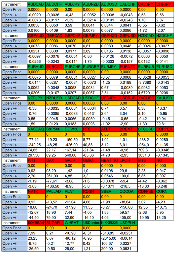 Весь перечень анализируемых активов указан ниже в общем количестве 62 инструмента. Здесь Вы найдете активы рынка Форекс, популярные активы Московской биржи, не менее популярные активы Чикагской биржи СМЕ и мажор криптовалютного сегмента - Биткоин, за которым следуют все альткоины.