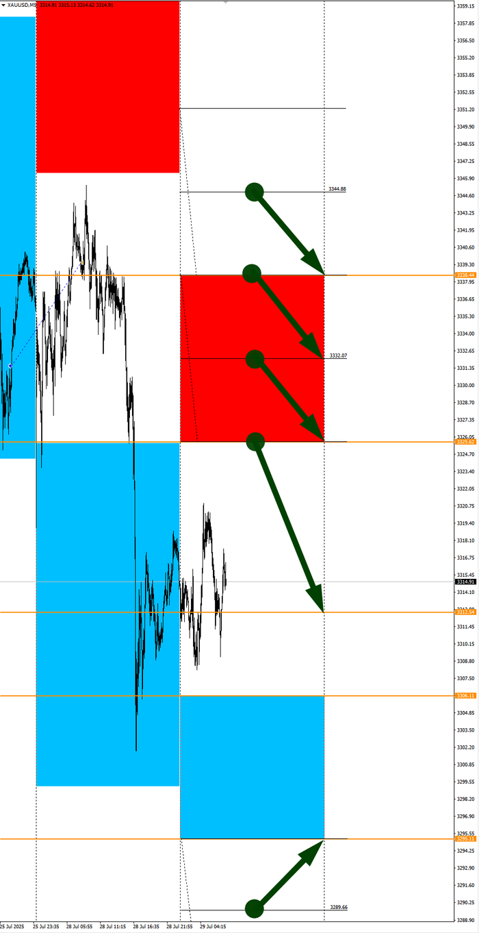 Зона покупок 3325,45-3299,21. Но новые покупки ожидаем от уровня 3286,08 и ниже с целью 3299,21. В покупках сокращаем торговый объем раза в 4, т.к. баланс.