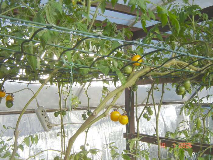 Эти помидорки хорошо росли летом под навесом, и я посадил их по осени в теплицу.