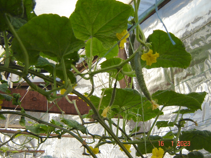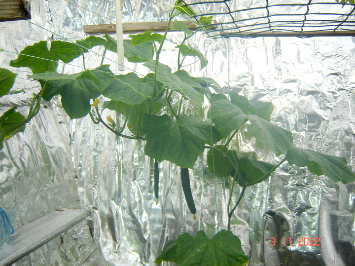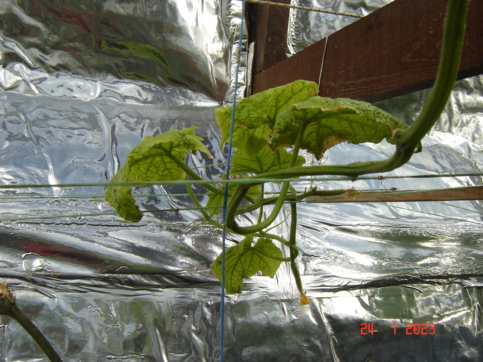 И один огурец погнал новые плети и начал цвести. Сильно поспособствовала очень солнечная погода в январе.