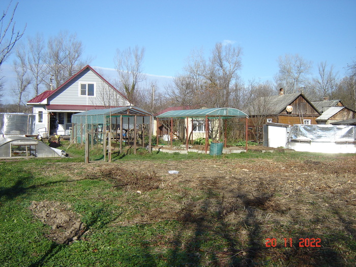 Под навесами уже пусто, убраны остатки растительности овощей, которые хорошо росли здесь летом.