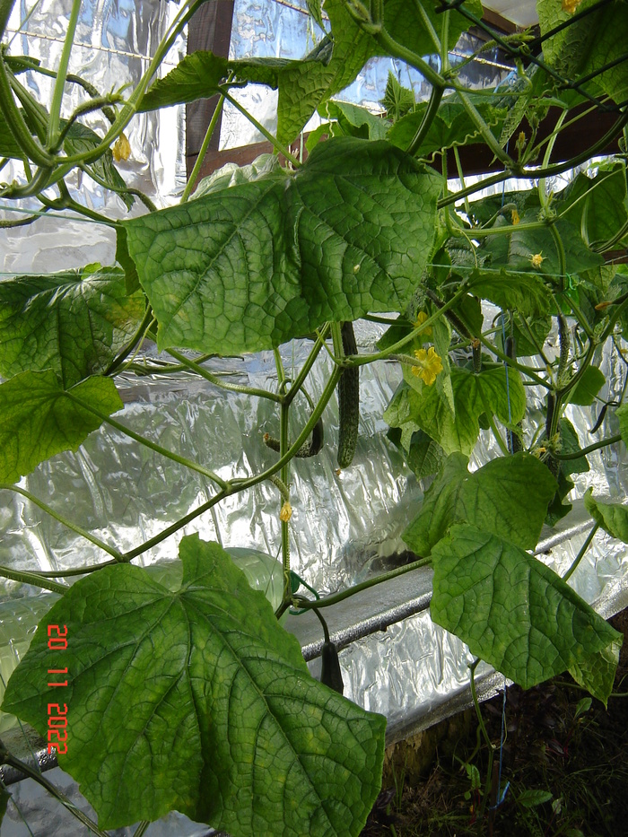 В подземной теплице, вместе с солнечной погодой, массово дуются огурцы.