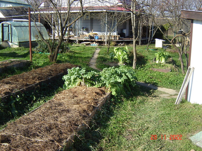 На заднем плане пекинская капуста. Большие кочаны и сегодня настолько греет солнце, что она даже повесила листья.