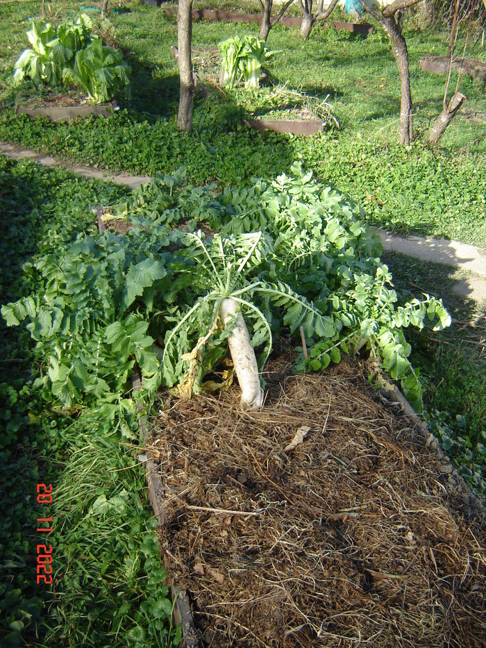 Последнее, что осталось расти на улице, дайкон и пекинская капуста.