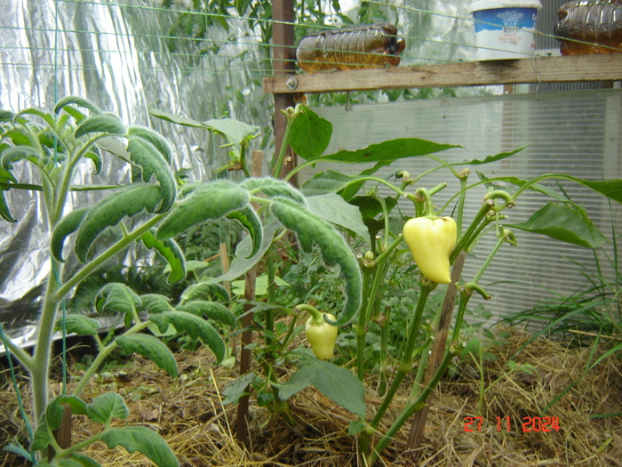 Как всегда лучше всех растут желтые помидорки, семена которых мы взяли несколько лет назад у себя с грядки, и название их я уже не помню.