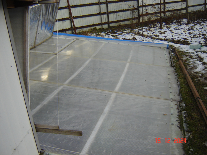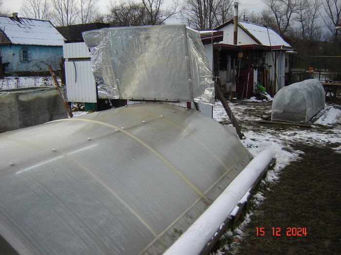 Закладываю наполнитель слоями и пересыпаю землей. Воду, в которой замачивалось все это, выливаю сюда же и это еще и водозаряд, поскольку с поливами зимой в теплице надо очень осторожно из за отсутствия проветривания и сырости.