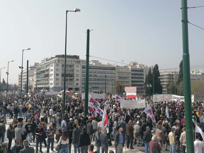 «Сегодня здесь, на площади Синтагма, Афины сотрясаются от лозунга, и его эхо разлетается по всей Греции: