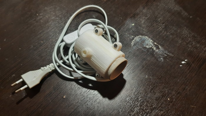 Осталось совсем чуть-чуть, а именно - собрать провод с выключателем и зафиксировать его при помощи узла и случайного куска пластика,