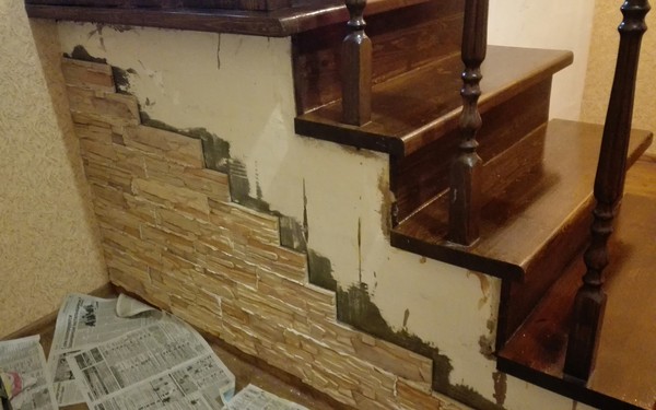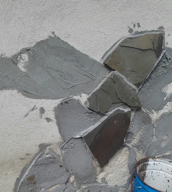 Приклеил вначале пару камней разными смесями,после двух недель с монтировкой пришел отдирать.Почти все камни отвалились кроме пару штук.