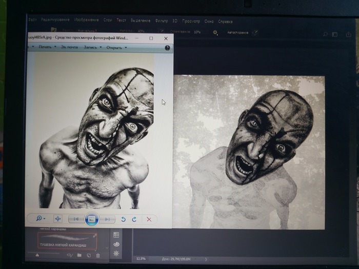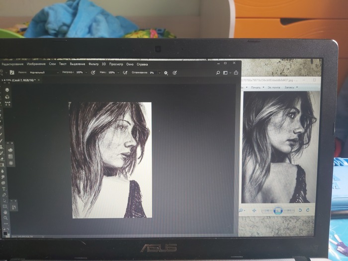 В низу прикрепил фото с монитора(слева оригинал без фона и части головы, справа мой рисунок, правда фон позже сменил на более подходящий