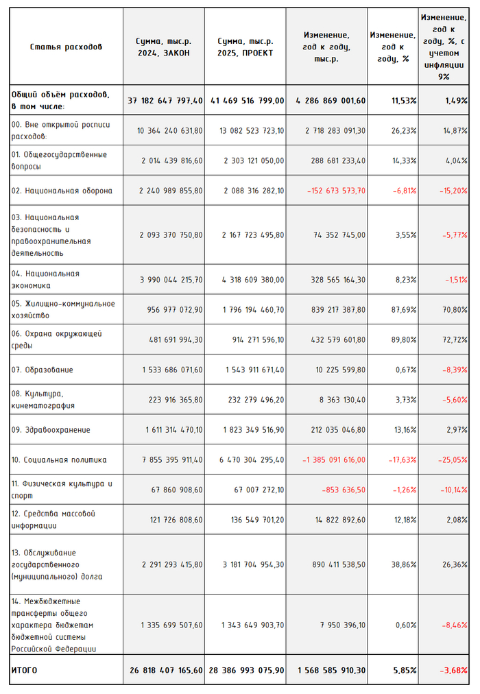 О проекте бюджета 2025 одной таблицей. 30.09.2024