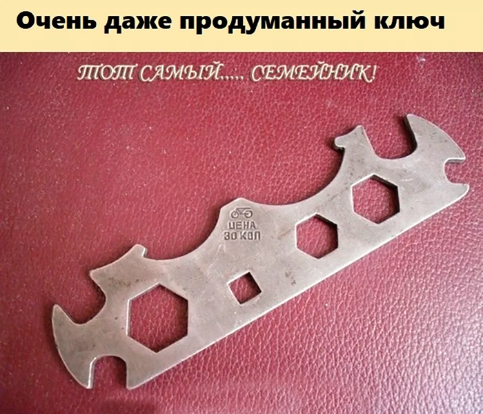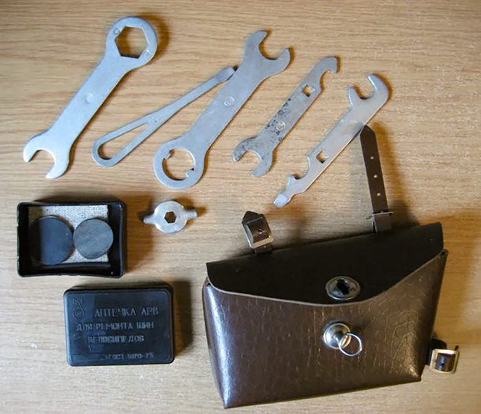 Лежало в наших бардачках много всякой всячины: ключи для велосипеда, отвёртка, обязательно тряпочка, которая со временем становилась однотонного коричневого цвета, в мазуте и в пыли. Особое место занимал ключ «семейник». Везде называли его по-разному, у кого-то семидыр, у кого-то главняк. А самый забавный был маленький ключик - спицы подтягивать. У особо запасливых там был и клей, и резиновая заплатка, и наждачка.