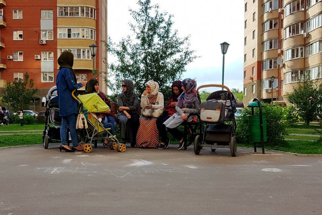 Вот цитата из той же научной статьи: «На улице и во дворах этих домов почти всегда можно увидеть женщин в хиджабах и национальных платках, а в городских маршрутках визуально отличимых иноэтничных мигрантов обычно не меньше половины… На первых этажах домов – халяльные лавки, «этнические» кафе, мелкие продуктовые магазины, принадлежащие мигрантам… Всего на девять домов пять кафе, которые можно классифицировать как «этнические», – "Дидор", "Рахат", "Амина", "Душанбе", "Евразия", а в местном спортзале после шести «сплошной Садовод», как рассказывают информанты. Дети на детских площадках – со всех уголков СНГ – из Армении, Азербайджана, Таджикистана, Киргизии и пр.».