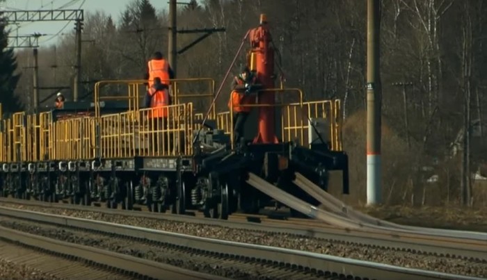 После замены старые плети нужно куда то девать. Их грузят на рельсовозный поезд и увозят с перегона.
