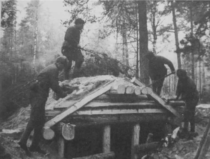 Часто бойцы строили укрепленные блиндажи и землянки. Это был тяжелейший физический труд, бревна часто укладывали в три наката, но убежище было теплым и относительно безопасным.