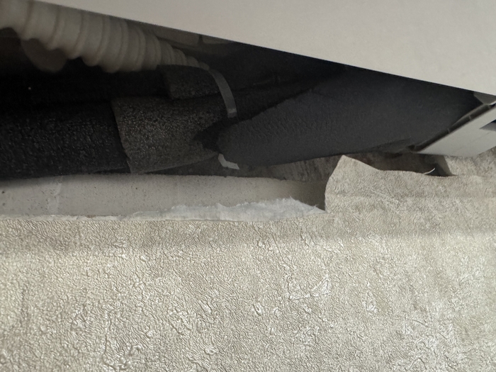 Теплоизоляцию оторвали монтажники видимо тоже решили что производитель глупый зря ее ставит.