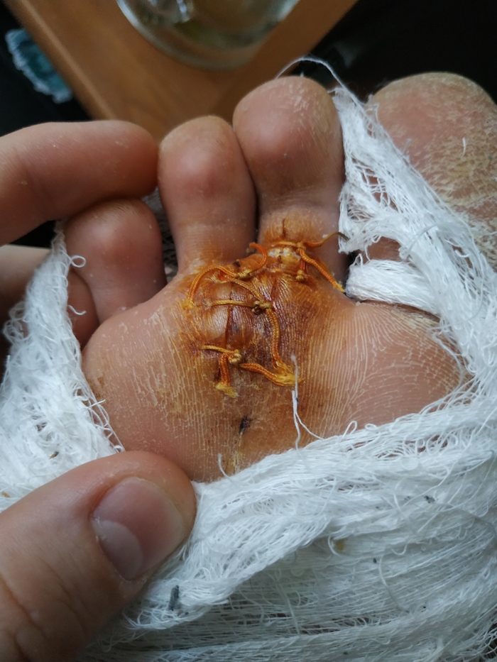Кстати, боль я чувствовал только когда делали обезболивающее(его несколько раз ещё кололи) и когда зашивали ногу(такое себе ощущение). Так что люди если что-то такое случается с вами - не бойтесь что вам там что-то резать будут. Лучше уж сейчас потерпеть, чем потом мучиться