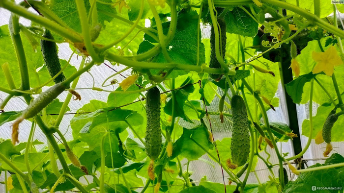 Стебель продолжает расти на протяжении всего сезона. Плоды формируются не только на главном стебле, но и на боковых побегах, что увеличивает общий урожай, особенно при регулярном сборе огурцов. Урожайность сорта впечатляет: с одного квадратного метра можно собрать от 8,2 до 10,2 кг выровненных, красивых плодов.