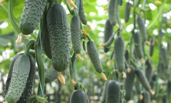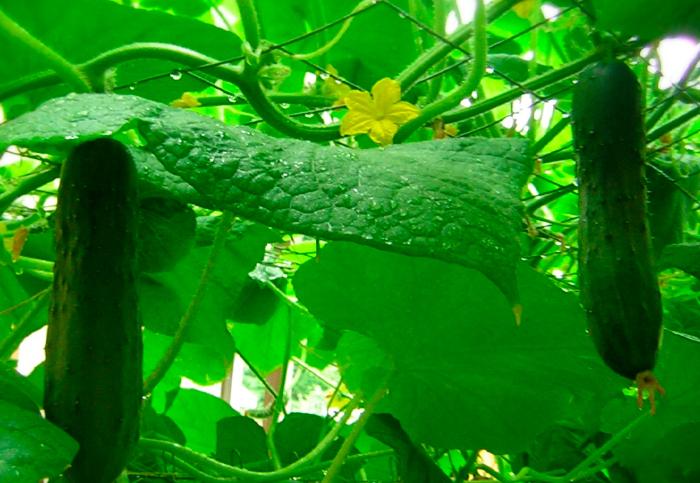 Кусты этого гибрида отличаются сильным ростом и не ограничены в длине побегов. Листья среднего размера, насыщенно-зеленые, с ровным краем и слабой морщинистостью, создают благоприятную тень для завязей и защищают их от перегрева. В каждом узле формируется от одной до трех завязей. Урожайность сорта высокая: с одного квадратного метра можно собрать 10–13 кг отборных огурцов, а при хорошем уходе и регулярном сборе плодов растения продолжают радовать урожаем вплоть до осенних заморозков.