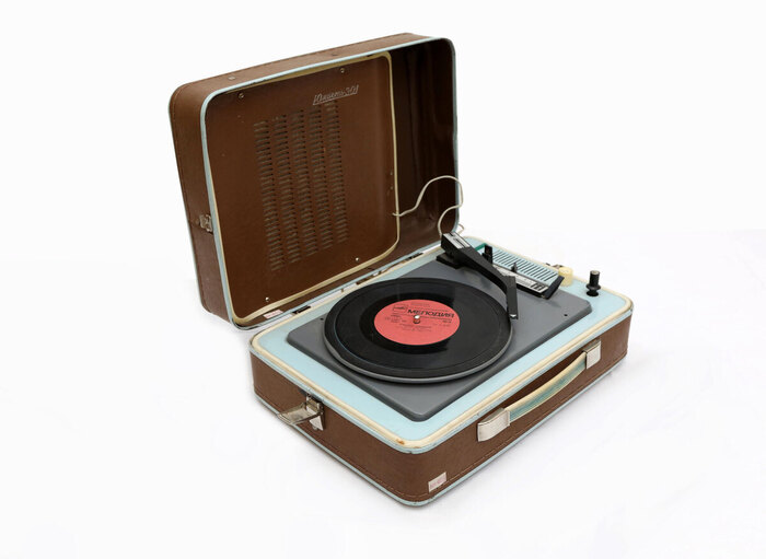 Кассетный диктофон Philips EL3302 (1968), внешне идентичный первому кассетному магнитофону Philips EL3300 (1963)