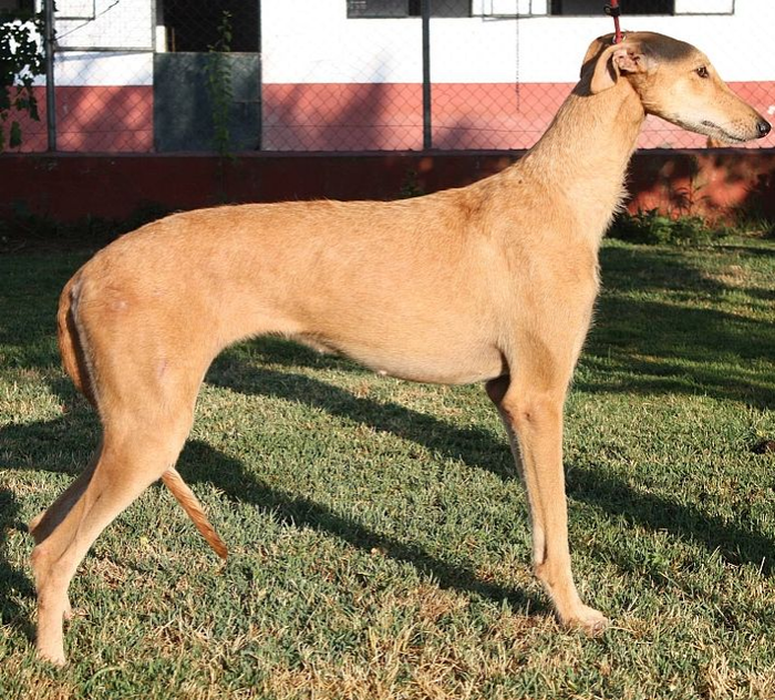 ‘also the ancient Egyptian sighthound had large prick ears; body and tail are similar at both dogs. The ancient Egyptian sighthound often curled their tail; the Balearic dog does the same if it is in relaxed mood. But how did this Pharaonenhund come to the Balearic islands? He might have come through Greek influence; we see him also on ancient Sicilian coins. But more likely, the Carthagians have imported him to Ibiza, which came under their rule very early.’ (v. Muralt, ‘Jagdkynologisches von den Balearen’. article in ‘Hundesport und Jagd’, Nr. 33, Zurich 1906)