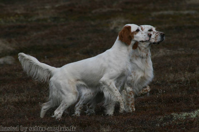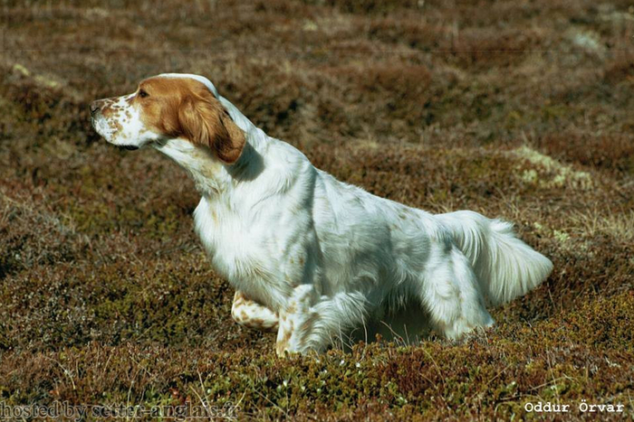 Английский сеттер Kvernmomarka´s Husavikur Odin, стойка на птицу.