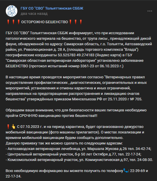 6) Если ваше домашнее животное имело контакт с диким/безнадзорным животным, провялявшим странное поведение, либо просто было покусано диким животным - ваше домашнее животное необходимо поместить в карантин и незамедлительно связаться с городской ветеринарной станцией. Никто вашу собаку просто так не убьет и не побежит исследовать мозг, но помогут с грамотной организацией карантина и проконсультируют, есть ли смысл в вакцинации/ревакцинации животного от бешенства.