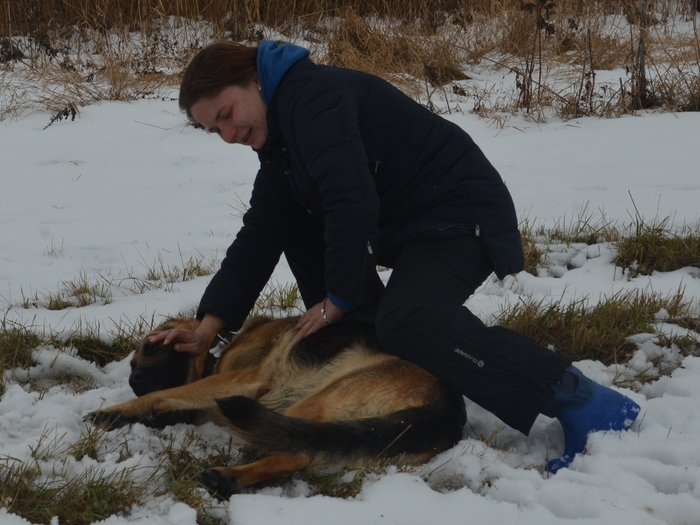 Обошлось, травм особах нет, у меня небольшой синяк, у овчарки и коллеги легкий нервный тик.